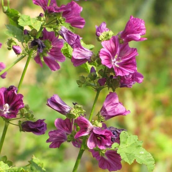 Die Mauretanische Malve wird bis zu 1,50 hoch, ist ausdauernd und ein wunderschöner Farbtupfer im Gartenbeet. Man kann Malvenblätter essen und die Blüten für den Wintertee trocknen. Insekten tummeln sich natürlich auch gerne auf dieser prächtigen Staude.