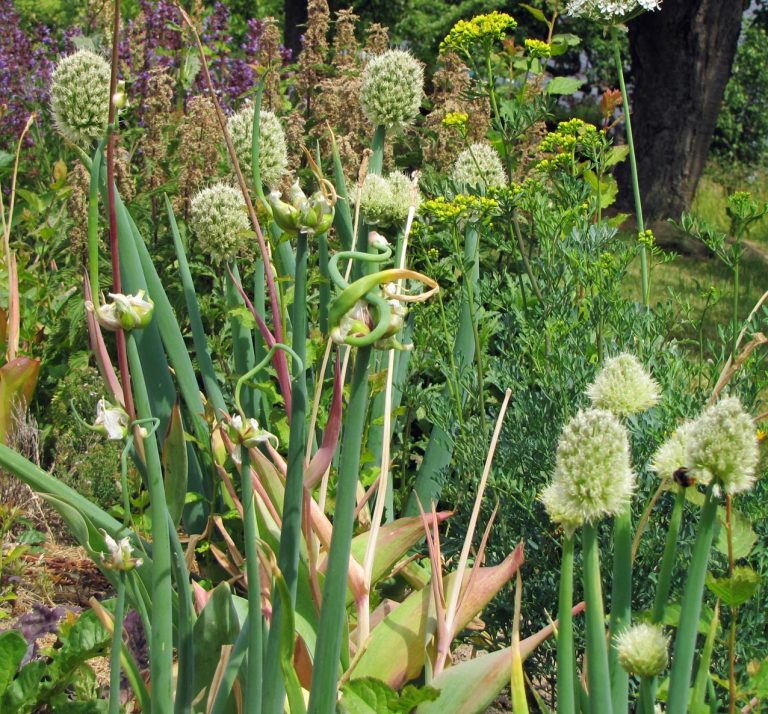 Die Winterzwiebel, oder Winterheckenzwiebel ist mehrjährig, frosthart und so zu ernten wie Schnittlauch.